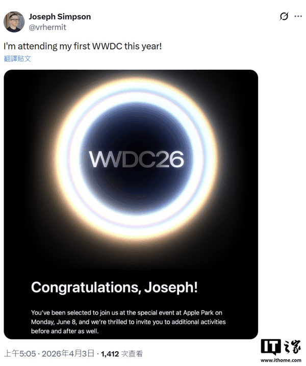 IT之家 4 月 3 日消息,据科技媒体 9To5Mac 昨天报道,苹果已开始向开发者公布 WWDC 26 开发者大会现场参加资格的抽签结果, 报名过的用户可打开电子邮箱查看是否选中 。