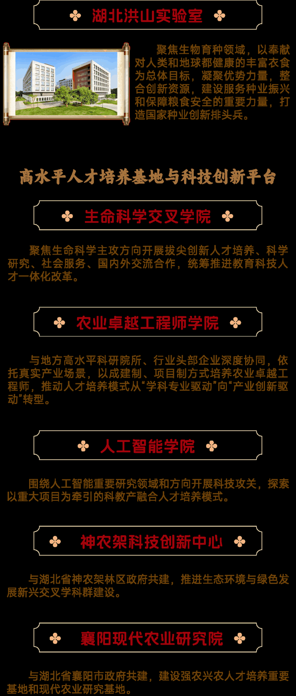 ❖ 工作平台: 符合实验室需要,优先双聘至作物遗传改良全国重点实验室、农业微生物资源发掘与利用全国重点实验室、果蔬园艺作物种质创新与利用全国重点实验室、粮食安全数智治理哲学社会科学实验室和湖北洪山实验室等高水平科技创新平台,提供一流科研平台保障;