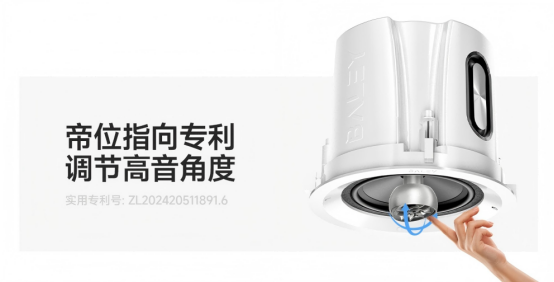 传统吸顶音响存在致命痛点——安装后,高音覆盖被锁死了,无法调整。BALEY八雷率先打破这一行业桎梏,推出帝位指向调节技术,实现吸顶音响的革命性升级,真正适合家庭影院场景。