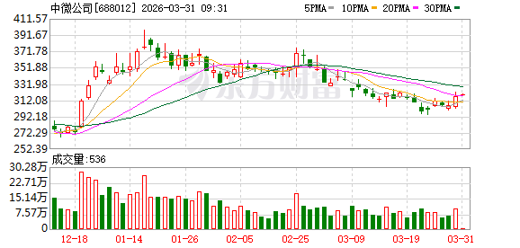 3月30日收盘,中微公司报收316.74元,增长3.64%。
