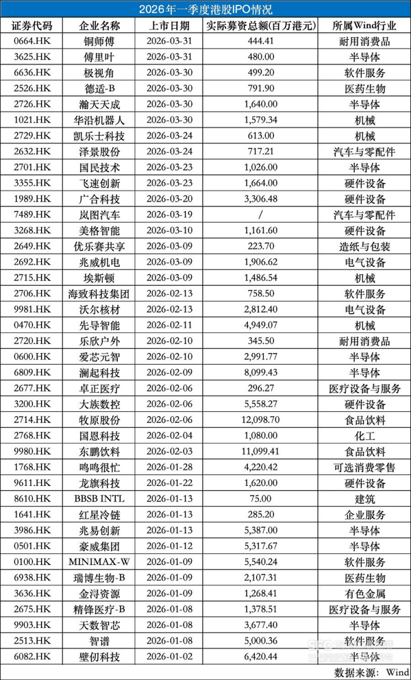 2026年一季度,港股IPO市场以千亿港元融资交出了一份亮眼的成绩单。