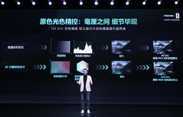 硬件与算法的深度协同,使两款产品实现100% BT2020广色域,色彩纯度接近100%,色彩表现远超QD OLED。在调校层面,东芝电视依托七十余年独家色彩管理档案,结合AI技术生成基础画质参数,再由日本专业调校专家精调,确保画质符合“真实还原自然”的最佳东芝标准。此外,硬件级原生低蓝光设计从发光源头降低42%有害蓝光,三原色独立控光控色技术令整机功耗降低30%,在带来极致画质的同时兼顾健康护眼与绿色环保。