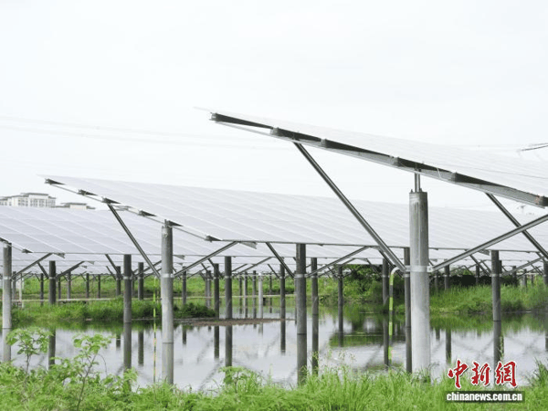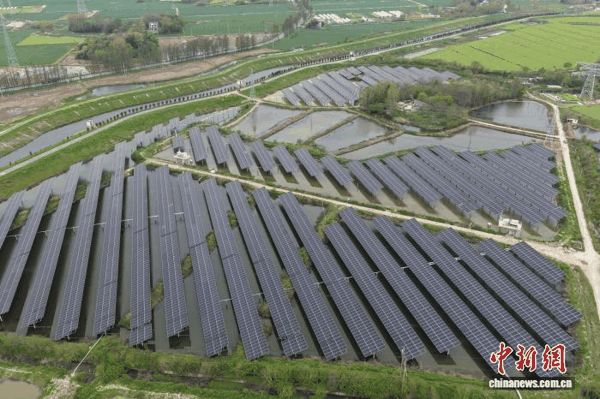 中新网 合肥4月11日电 (记者 张强)一排排光伏板整齐有序地排列在水面上,与周边的水乡环境完美融合,景象蔚为壮观。这一片片水面正逐渐转化为绿色能源“海洋”。