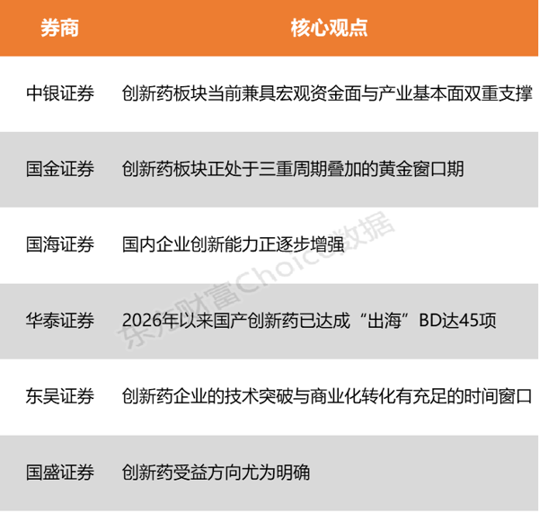 中银证券 表示,创新药板块当前兼具宏观资金面与产业基本面双重支撑:美债收益率与A股创新药行情呈显著负相关,若地缘冲突缓和推动海外重回降息周期,有望吸引全球配置资金回流。 国金证券 指出,当前创新药板块正处于“业绩兑现、估值修复、会议催化”三重周期叠加的 黄金 窗口期。