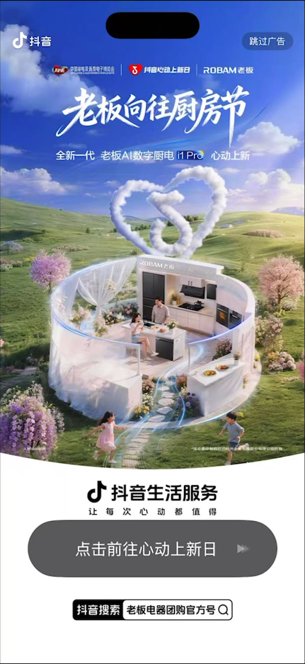 当我们谈论“向往的厨房”时,我们到底在向往什么?是高效便捷的烹饪体验,还是充满创造力的生活空间?3月12日至25日,老板电器携手「抖音心动上新日」,以一场“老板向往厨房节”的主题活动给出了自己的答案。正值AWE家电盛会与315大促,品牌将年度重磅新品发布融入其中,不仅打破了厨房的物理边界,更借助AI的智慧,为每一个热爱生活的你,描绘出未来厨房的理想模样。