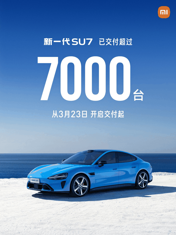 小米汽车3月交付量超20000台,新一代SU 7交付已超7000台