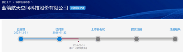 同日,蓝箭航天科创板IPO中止,原因系发行上市申请文件中记载的财务资料已过有效期,需要补充提交。