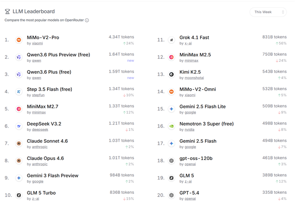 实际上在OpenClaw风靡全球的同时,几家国产AI大模型的使用量也在突飞猛进,最近2个多月长期霸榜OpenRouter的用量榜, MiniMax 2,5/2.7一度还是榜首,截至发稿时依然维持在调用量的TOP5。