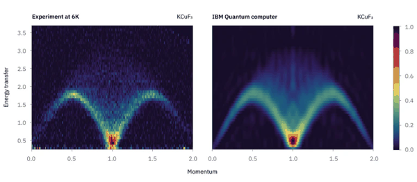 左图为中子散射实验结果,右图为 IBM 量子计算机辅助模拟的同一实验结果。图片来源: Y.-T. Lee/ arXiv