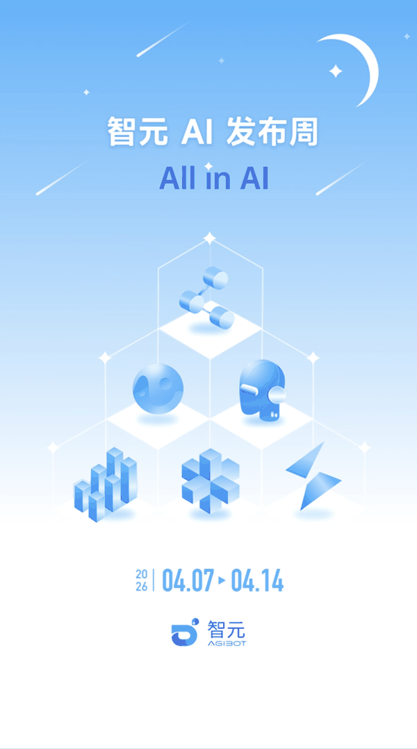 IT之家 4 月 3 日消息,今天上午,@智元AGIBOT 宣布,“智元 AI 发布周”(AGIBOT AI Week)将于 4 月 7 日-14 日 启动。这场为期一周的集中发布,将是智元在具身智能领域 AI 自研成果的一次密集亮相,旨在推动全行业加速物理 AI 的进化。