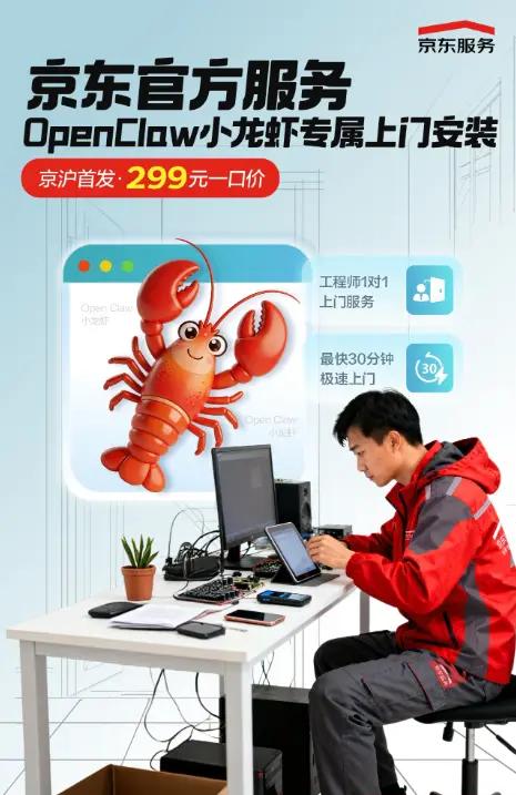 京东推出OpenClaw小龙虾上门安装服务首发价299元