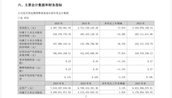 数据显示, 海思科 2025年实现营业收入43.88亿元,同比增长17.91%;归属于上市公司股东净利润2.6亿元,同比减少34.36%;扣非归母净利润1.67亿元,同比增长26.33%。