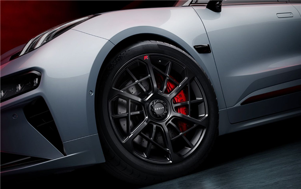 该车配备了五周年专属红底车标,提供冰川银车身配色搭配撞色车顶,并搭载FR-LINE性能套件, 包括性能金属踏板、FR-LINE迎宾踏板、22英寸暗影黑锻造轮毂、极氪品牌定制倍耐力PZERO高性能轮胎、Brembo六活塞红色卡钳 ,动感造型,视觉张力与个性拉满,区分常规版本视觉特征。