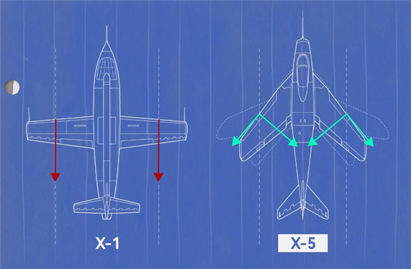 直到之后的 x5,又吸收了德国同行的设计,将原来平翼改成了能向后折叠,并能改变角度的可变后掠翼。
