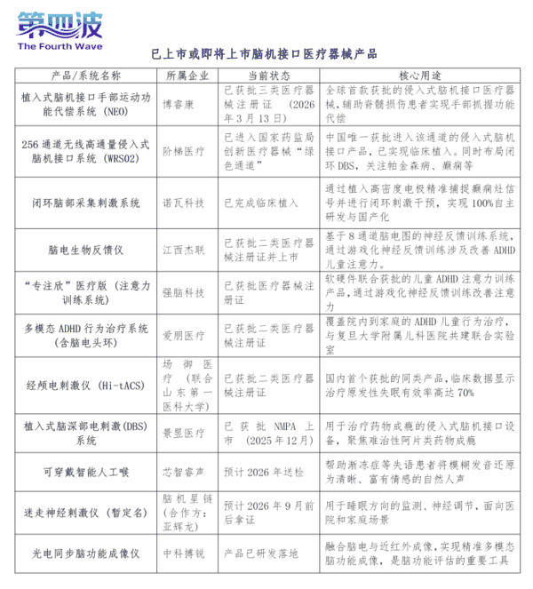 例如,侵入式脑机接口临床应用进入“准商业化”阶段,临床试验的突破有望快速落地。以脑虎科技、博睿康、阶梯医疗为代表的企业,在临床试验中已经积累了丰富的案例。部分半侵入式和柔性侵入式产品已进入国家药监局的“ 创新医疗 器械”绿色通道,预计2026-2027年将正式获批上市。这意味着侵入式脑机接口即将从“科研样品”转变为可收费的“ 医疗器械 ”,商业闭环即将打通。