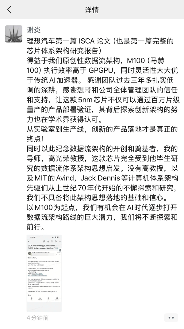 汽车行业首家:理想马赫100芯片研发团队论文被2026 ISCA Industry Track录用