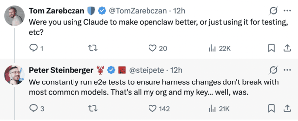 而之所以网友会觉得此次封禁不是误会,是有意为之,站在 Peter Steinberger 的视角看待问题,其实是存在着一个残酷的现实,在大模型时代,开源软件的「生命线」还是握在模型厂商手中。