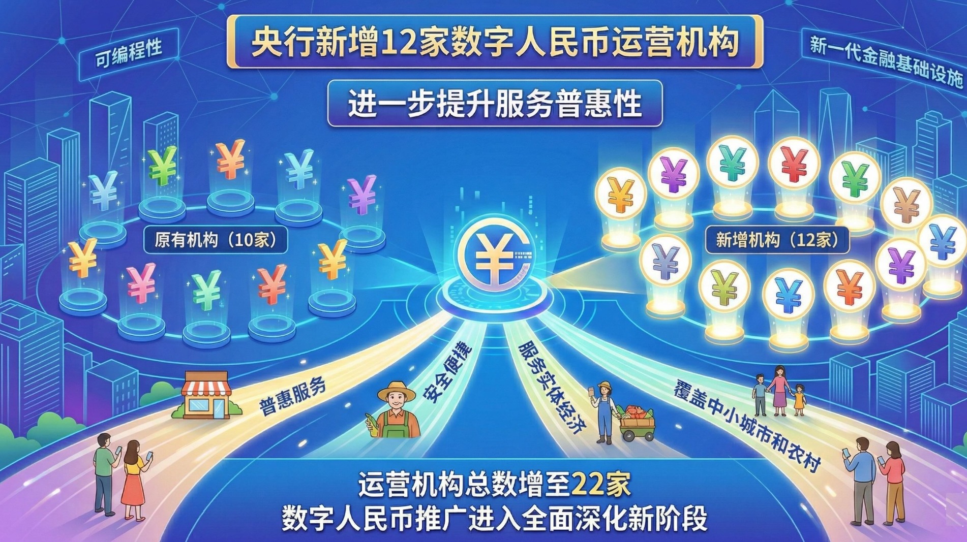 中国人民银行表示,此次新增运营机构旨在贯彻落实“十五五”规划纲要关于“稳步发展数字人民币”的决策部署,进一步提升数字人民币服务的普惠性,持续响应人民群众对安全、便捷、高效的数字人民币服务需求。