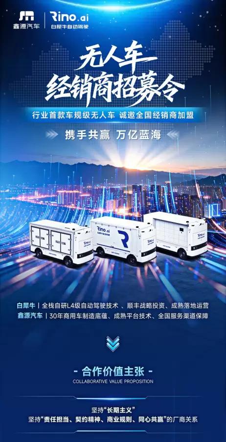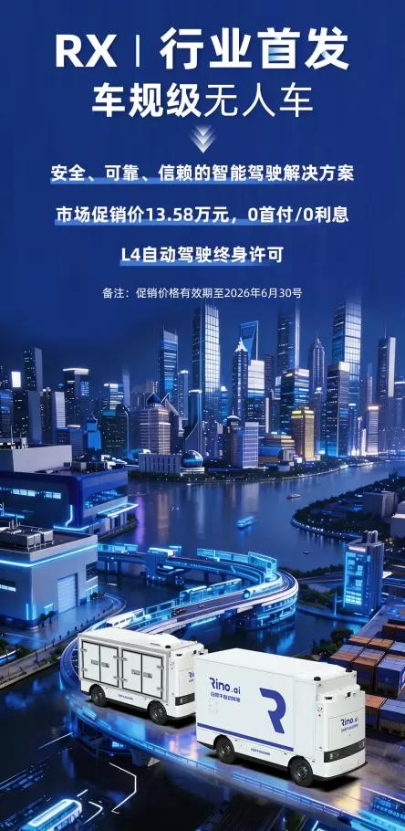 2026年4月9日,中国L4级自动驾驶商业化迎来关键里程碑。白犀牛自动驾驶与国内头部商用车制造商鑫源汽车联合宣布成立合资公司,共建全球首家专注Robovan的主机厂。同时,双方联合研发的行业首款全车规级无人车——白犀牛RX正式首发。