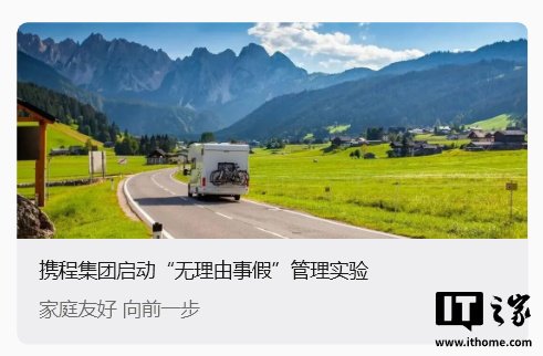 IT之家 4 月 7 日消息,携程集团今日(2026 年 4 月 7 日)宣布,将于 2026 年 5 月 1 日起, 在部分业务部门启动为期一年的“无理由事假”管理实验 。