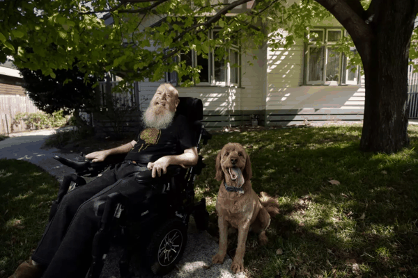 植入BCI满5年的戈勒姆与宠物狗派珀(Piper)