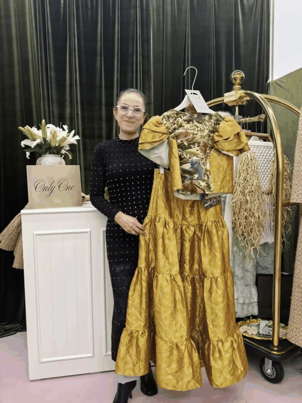 “泡泡袖上衣和蛋糕裙下装是西式版型,而面料则采用了华丽的中式缎面和寓意‘年年有余’的金鱼图案。”阿根廷设计师Cecilia Buisedera在MODE展现场向上海证券报记者介绍了她所设计的一套融合了东西方文化元素的裙装。Cecilia表示,本季上海时装周,她创立的品牌Only One重点展示以“ 酒店 记忆”为灵感,推出了可日常可度假的氛围感穿搭系列。