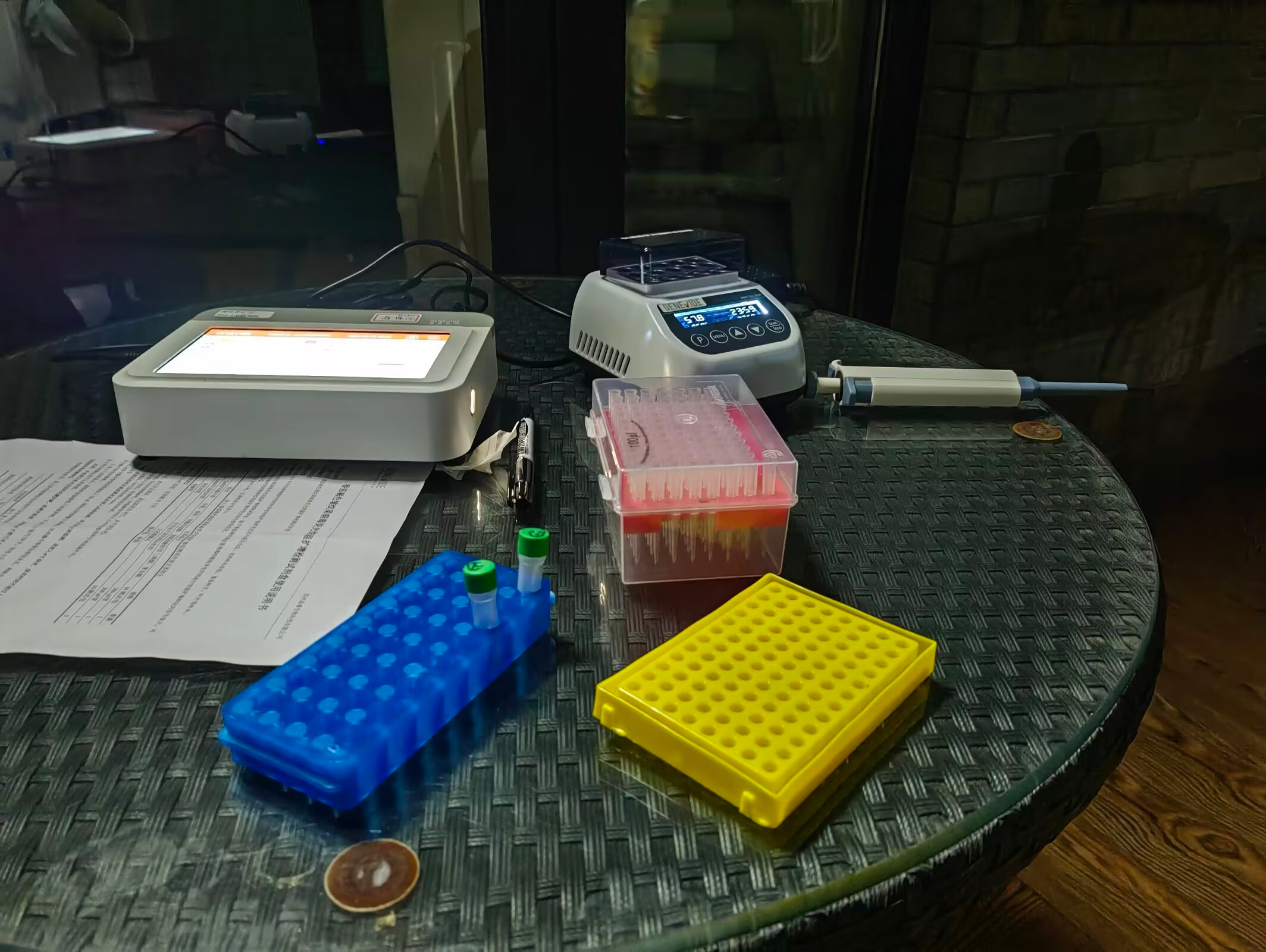 有一位G老师,是朋友介绍的,特别忙,协调时间总在变化。有一次我在珠三角出差高铁上,大约晚上9点,G老师发信息提出可以10点在佛山一家KFC相见。收到此信息车刚到佛山站,我没有犹豫,立刻下车。然而天公不作美,暴雨骤降,大到撑伞变得没有意义。很快鞋子湿透,我打伞护着仪器,身子在雨中行走。我按老师给的地址怎么都无法找到那家KFC(后来才知道有一道门10点关闭)。等我抵达时,四周已经一片漆黑,雨渐小了些,仍能感觉老师的不悦。当时已经11点多了,KFC已经关门,老师坐在外面太阳伞下等着。我一边给老师道歉,同时在店外墙上找到一个插座,插上去后竟然有电!我展开了实验。流程很快,结果也如往常一样的好。G老师没再说什么,让我先找地方睡一觉,“明天上午一起喝早茶吧”,我紧绷的心如天上的乌云,散了。