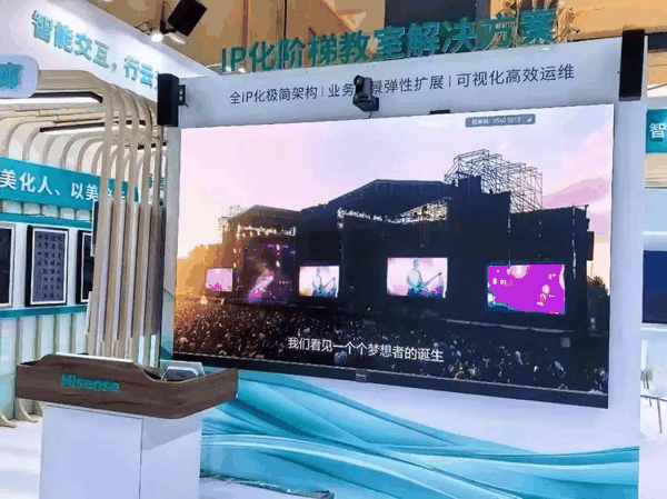同时,海信LED产品也亮相现场,其海信首创ASIC架构,取消发送卡与接收卡,一根HDMI线就能实现笔记本投屏,操作极便捷;再搭配海信自研画质芯片,参考级画质,教学素材细节一目了然。