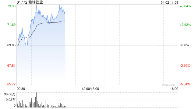 赣锋锂业盘中涨近6%麦格理维持“跑赢大市”评级