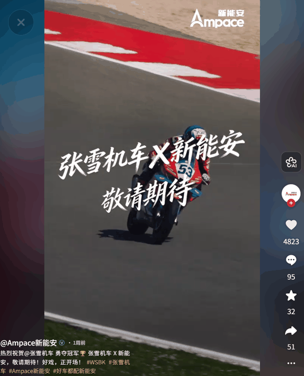 IT之家 4 月 8 日消息,宁德时代旗下厦门新能安科技有限公司(以下简称“新能安”)上周在抖音平台发布视频表示,“ 张雪机车 x 新能安,敬请期待!好戏,正开场! ”一时间,双方是否会合作引发讨论。