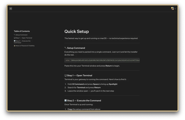 从仿冒网站我们可以看到,这段恶意指令采用 Base64 编码,不太懂计算机的人看不出有什么异样。但只要你把它粘贴到终端里执行,代码就会被解码并安装恶意软件。