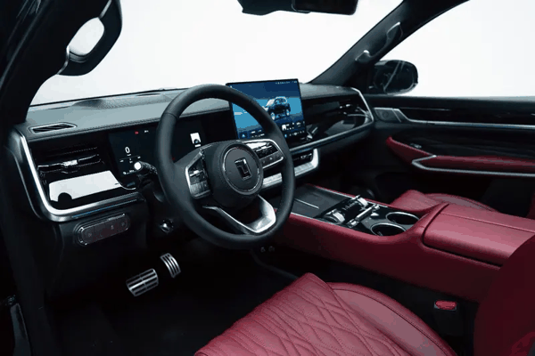 内饰方面,新车采用上黑下红的双色设计,并在多处细节加入镀铬元素点缀,提升整体精致感。配置方面配备三辐式多功能方向盘及 14.6 英寸悬浮式中控屏。