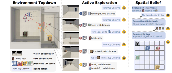 但李飞飞和李曼玲团队觉得这还不够。真实世界不是开卷考,没有人会把所有信息一次性摆在你面前。你推开一扇门只看到客厅一角,走过走廊瞥见卧室一角,要理解整个房子的布局,你得把这些碎片拼起来,还得知道自己还有什么没看到,下一步该往哪看。