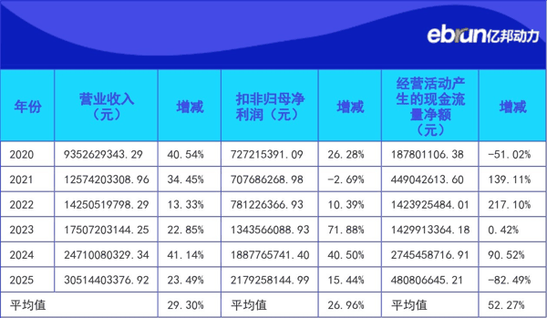2025 30514403376.92 23.49% 2179258144.99 15.44% 480806645.21 -82.49%