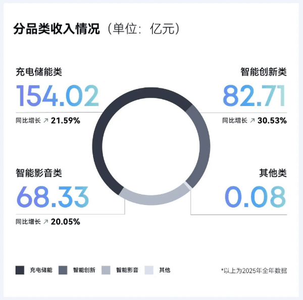 2025年,安克创新的充电储能类、智能创新类、智能影音类三大产品线均稳步发展。
