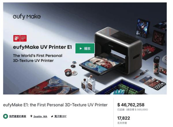 去年 ,eufyMake E1 在 Kickstarter 开启众筹,最终筹得超 4600 万美元,破了平台历史纪录。