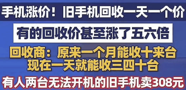 但最近,旧手机回收市场的价格标签,已经开始变得非常不讲武德。