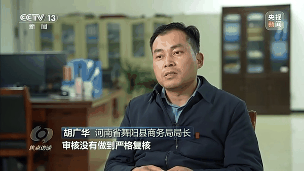 胡广华: 我们在审核过程中对他们报的数据,审核没有做到严格复核,在数据采集的过程中没有严格地每个月到企业查,这个数到底是不是省外的,来源在哪,没有严格去把关。我们工作有失误,确实这样,所以造成数据的失真失实。