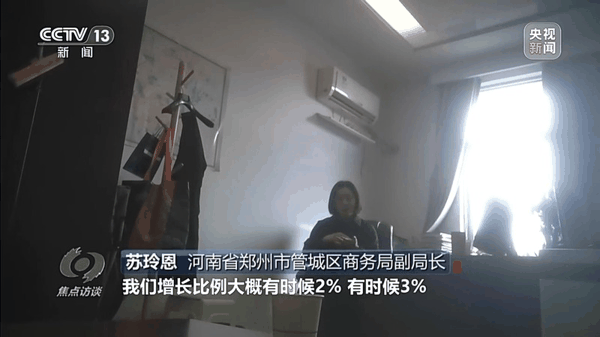 河南省郑州市管城区商务局副局长苏玲恩: 省里给各市下指标,市里给我们下指标,我们增长比例大概有时候2%,有时候3%。