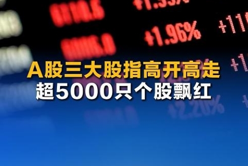 A股三大股指高开高走 超5000只个股飘红