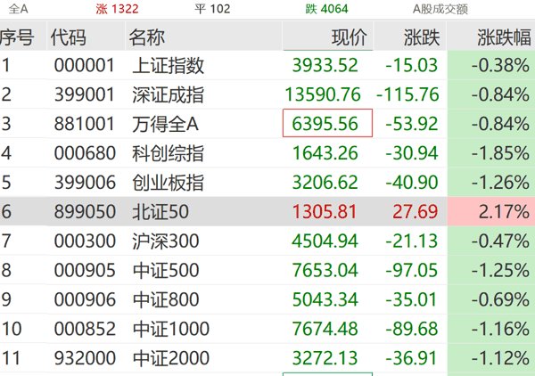 4月2日,A股市场早间小幅低开,随后持续震荡。截至发稿,A股主要指数绿多红少,超4000只个股下跌;北证50指数逆市走高,涨超2%。