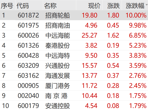 与此同时,上午A股 航运 板块再度走强, 招商轮船 两连板, 招商南油 涨停, 中远海能 、 秦港股份 等跟涨。