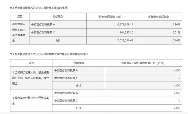 中欧基金内部员工也小幅增持了中欧医疗创新股票基金。截至2025年底,中欧基金内部员工持有中欧医疗创新股票基金702.36万份,而在2025年6月底持有份额为681.98万份。