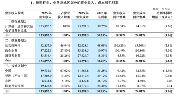 从主要业务结构来看, 运营商网络、算力、家庭和个人终端三大业务分别对收入的占比为7:2:1,到2025年占比已经转变为2:1:1。