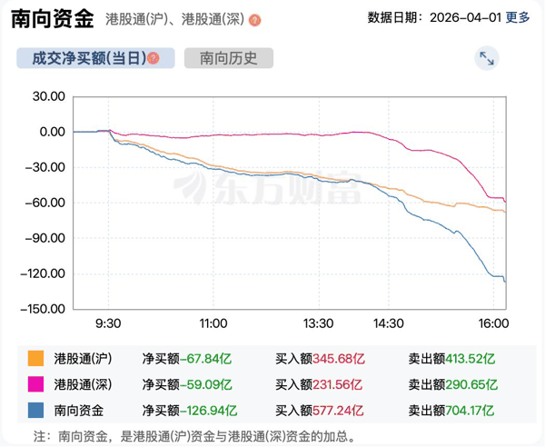 资金方面,尽管市场反弹,但南向资金今日出现较大规模净卖出。截至收盘,南向资金净卖出港股超126亿港元。