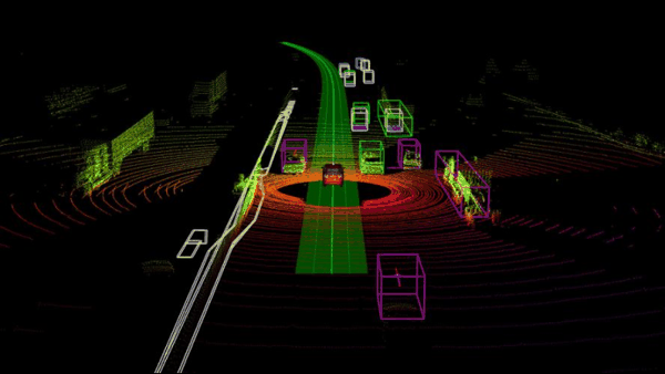 当激光雷达不断发射激光束,每一次反射回来都会形成一个空间点,这些点组合在一起,就构成了车辆看到的三维世界。如果点比较少,只会形成一个模糊的点状轮廓;如果点足够多,生成的轮廓就会清晰,甚至接近真实图像。