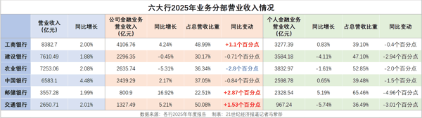 2025年,六大行的业务天平再度向公司金融倾斜。在零售业务增速放缓之际,对公板块成为了稳营收、扩规模、调结构的关键支撑。