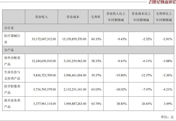 其330亿的生意大致分四类,即 体外诊断 (IVD)、生命信息与支持(如呼吸机、监护仪等)、医学影像设备,以及今年单列的新兴业务,如 微创医疗 器械、动物 医疗设备 等。