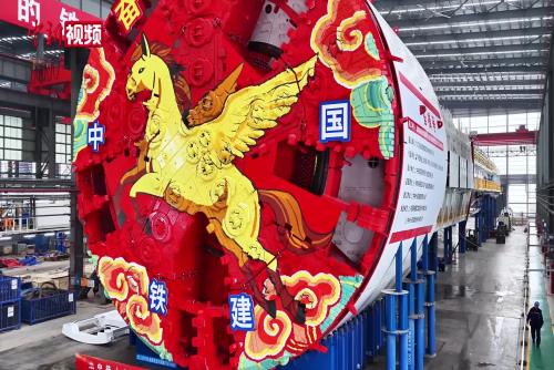 国产超大直径盾构机“奋楫号”在江苏南通下线