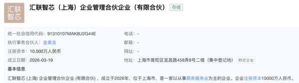 天眼查信息显示,深圳一颗星空间科技有限公司法定代表人金美含,同时是汇联智芯(上海)企业管理合伙企业的执行事务合伙人。该公司成立于2026年3月19日,金美含持股80%,汇芯二十二期股权投资(南平)合伙企业(有限合伙)持股20%。